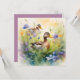 Cute watercolor duck n wildflowers blank greeting card. Beautiful wildlife design. Plum back version.