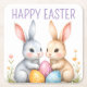 Cute Watercolor Easter Bunnies Happy Easter Square Paper Coaster