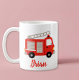 This adorable mug is the perfect gift for any child who loves emergency vehicles or anyone who works as a first responder! The classic white ceramic mug features a cute, hand-painted style watercolor fire truck in bright red, complete with a ladder and flashing light. The mug is fully personalized with a custom name (e.g., Brian) in a fun, handwritten-style font below the graphic.