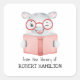 CUTE WATERCOLOR HIPPO READING BOOK BOOKPLATE SQUARE STICKER