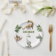 Celebrate your little one’s special day with this adorable dinosaur-themed birthday party paper plates! Featuring cute watercolor dinosaurs and leafy greenery, this customizable party plate is perfect for boys or girls who love dinos. Easily personalize the name, age, date, time details in minutes. Ideal for dino-themed, outdoor, or park birthday parties.