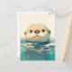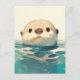 Cute Watercolor Otter Peeking Water Postcard