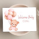 Cute Watercolor Pink Teddy Bear Welcome Baby Card