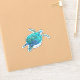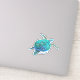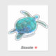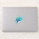 This summer beach-inspired sticker features a cute watercolor aqua blue sea turtle on a splash of ocean wave. The sticker is custom cut to the shape of the turtle.
