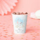 Elegant baby shower paper cups featuring a watercolor stork. Font in Dark Grey.
