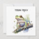 This charming greeting card features a delightful watercolor illustration of a cute tree frog with a thoughtful expression, perched peacefully on a branch. The soft, artistic style and vibrant green hues make it a beautiful way to share a message for any occasion.