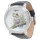 This watch features a charming watercolor painting of a tree frog. The design showcases the frog perched thoughtfully on a branch, brought to life with soft washes of green, brown, and hints of yellow and blue. The loose, free-flowing style of watercolor gives the art a fresh, natural, and whimsical feel, making it a perfect accessory for nature lovers, artists, or anyone who appreciates unique and playful designs. Want to make it uniquely yours? Add your own words for a truly special touch. You can use phrases like "My spirit animal" or "Leap of Faith" to show your love for nature, or add a simple, personal touch with text like "On the go" or your initials. For a more playful vibe, a fun phrase like "Feelin' kinda froggy" can be the perfect final detail.
