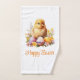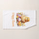 Cute watercolor Easter yellow chick in coloured eggs and flowers – a lovely and simple design for bath towels that depicts a classic Easter illustrations and elements. A wonderful design for your Easter season holiday home .