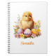 Cute watercolor Easter yellow chick in coloured eggs and flowers – a lovely and simple design for notebook that depicts a classic Easter illustrations and elements. A wonderful design for your Easter season holiday home .