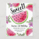 Bright and colourful watercolor watermelons invitation pattern was hand drawn and painted by me, Valarie. Only available in my shops. Make it your own by editing the text. Cute whimsical watercolor watermelon pattern with fun swirly fonts! Perfect for summer birthday parties.