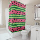 A shower curtain with a cute watermelon pattern. Green rind in layers of stripes along with a layer of pink stripes with black seeds inside.