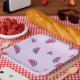 Bring a burst of summer sweetness to your next gathering with our cute juicy watermelon slices paper plates! Each plate features an endearing illustration of vibrant watermelon slices, showcasing their juicy red flesh and cheerful green rinds. The playful design highlights the watermelon's signature black seeds in a whimsical, eye-catching pattern. Set against a crisp white backdrop, the bright, bold colours of the watermelon create a lively contrast, adding a splash of fun to your table setting. Ideal for summer parties, picnics, and barbecues, these plates combine charming visuals with practical, disposable convenience, making them a perfect choice for celebrating in style. Serve up smiles and a touch of summer with this delightful design!