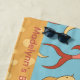 Get the party started with these cute beach towels that are easy to personalize for your bachelorette party, hen night, or girls' weekend! Modern party style design features a koi fish pattern in red and yellow, with bold red lettering on a blue background. Personalize with two lines of custom text; shown with the bride's name and event type, location and date. All text can be edited per your liking.