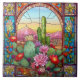 cute western cactus lovers stained glass ceramic tile