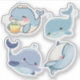 A cute whale with a big, round body, tiny flippers, and an oversized smile, floating happily in the ocean. Its playful eyes sparkle with joy, and it has a tiny water spout gently spraying from the top of its head. The whale's soft blue colour gives it an even more adorable and friendly appearance, making it look like it's having the best time in the water.