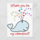 Adorable whale with hearts spray design is perfect for your child's Valentine's Day cards. Great for giving out to classmates as school, daycare, etc. Design features a little blue coloured whale. He is spraying various coloured hearts from his blow hole. There is text on the front in fun red font that says, Whale you be my valentine?, however the text can be changed by you to suit your needs. The reverse side has the same font and says Happy Valentine's Day! with a To and From area.