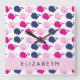 Cute Whales, Pattern Of Whales, Your Name Square Wall Clock