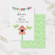 Cute Whimsical Birds And Birdhouse Wedding Favour Tags. Simple and sweet design of multi-coloured bunting and two quirky green birds flying towards a birdhouse with a heart shaped entrance. Easily customizable so you can add your own details for the bride and groom. Green pattern with blue hearts on the back. Matches other Wedding items in the Cute Invites Store.