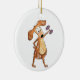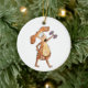 Cute Whimsical Brown Dog Lifting Weights Ceramic Ornament