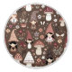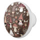 A knob for a dresser, cabinet or dresser drawer with cute mushrooms, gnomes, elves and flowers in brown and mauve.