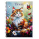 Cute Whimsical Cat, Flowers and Butterflies Notebook