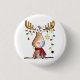 Cute Whimsical Christmas Moose 1 Inch Round Button