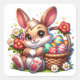 Cute Whimsical Easter Bunny with Basket Square Sticker