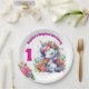Cute Whimsical Floral Unicorn Girly 1st Birthday Paper Plate