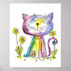 Cute Whimsical Happy Cat with Yellow Flower Poster