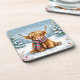 Cute Whimsical Highland Cow Christmas Coaster