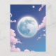 A charming, whimsical illustration of a big moon gently glowing in a peaceful night sky, surrounded by pink soft clouds. Its dreamy, serene atmosphere invites you to relax and imagine endless possibilities under the stars.