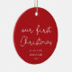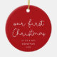 Cute whimsical Our First Christmas Red photo Ceramic Ornament