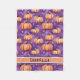 Snuggle up with this cool, cute fleece blanket featuring a whimsical pumpkin pattern on a purple background. Perfect for all ages, it's colourful and lovely, and can be personalized with your name.