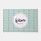 A welcome doormat with an adorable pattern. Colourful rainbows in a pink, blue and green colour scheme.
