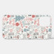 This cute Christmas phone case features a fun whimsical pattern of Santa illustrations, trees, and presents in pink, red, and teal.