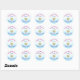 A baby shower thank you sticker. Designed with a cute nursery style illustration with an ark filled with wild animals and a butterfly flying overhead and a friendly whale spouting water below. Some blue clouds float on by. Set on a light blue ombre background.