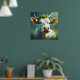 Cute White Ai Cow with Horns and Flowers Poster