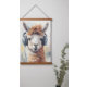 watercolor painting of a cute white alpaca listening to music through its headphones