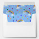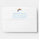 Send out your invitations and cards in style with this cute white custom envelope that features a hand drawn repeating pattern with rainbows and rainbow coloured raindrops on the inside as well as a custom printed return address on the top flap. The return address is customizable. To edit the text, click "personalize this template". There is a rainbow adorning the back flap above the return address printed in a blue font.