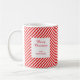 Cute white and red striped Coffee Mug. It’s very easy to customize, with details of your personal details.