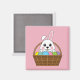 Cute White Bunny Colourful Easter Egg Hunt Basket Magnet