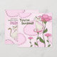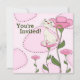 Cute White Cat and Pink Flowers Birthday Invitation