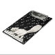 This mini clipboard is black and adorned with white musical notes. It has a vintage white cat drawing. The cat is winking and dancing across piano keys.