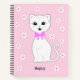 Cute happy white cat and flowers on light pink Notebook. Ideal for girls.