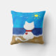 Cute White Cat Summer Ocean Beach Theme Pillow
