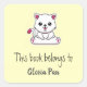 Cute white cat yellow square sticker