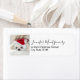 Return address labels with an adorable photo of a cute white doggy wearing a red christmas hat.