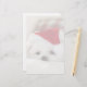 Stationery paper with an adorable photo of a cute white doggy wearing a red christmas hat.