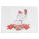 This cute White Elephant design features a watercolor elephant wearing a Santa hat. Text reads "White Elephant" in white on a red ribbon banner. The sides have a coordinating holly pattern.