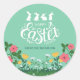 Cute White Green Spring Wildflower Happy Easter Classic Round Sticker